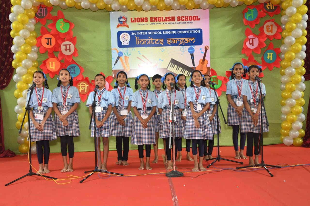 सिलवासा:लायंस इंग्लिश स्कूल (LES) में 24 जुलाई,2024 को बहुप्रतीक्षित तृतीय अंतर विद्यालयी गायन प्रतियोगिता लॉइनाइट सरगम आयोजित की गई जिसमें प्रदेश के 14 प्रतिष्ठित विद्यालयों के 279 विद्यार्थियों ने भाग लिया और अपनी असाधारण गायन प्रतिभाओं की श्रंखला का प्रदर्शन किया।इस संगीतमय आयोजन का शुभारंभ लायंस क्लब ऑफ सिलवासा चैरिटेबल ट्रस्ट के उपाध्यक्ष महोदय श्री अनंतराव डी जी निकम, कोषाध्यक्ष श्री विश्वेश दवे,निर्णायक गण श्रीमती अनेरी भवसर (संगीत शिक्षिका,एकलव्य स्कूल), श्री राहुल पंड्या(आकाशवाणी टेक्नीशियन, दमन), विद्यालय की प्रभारी प्रधानाचार्या श्रीमती निराली पारेख एवम् संगीत विभाग की विभागध्यक्षा श्रीमती रेणु शर्मा के कर कमलों द्वारा दीप प्रज्जवलन के साथ हुआ।जिसके पश्चात् सभी अतिथिगणों का पुष्प गुच्छ द्वारा सत्कार किया गया एवम् विद्यालय की प्रभारी प्रधानाचार्या श्रीमती निराली पारेख ने स्वागत भाषण द्वारा कार्यक्रम को संबोधित किया।इस प्रतियोगिता को चार वर्ग में आयोजित किया गया जिसमें प्रथम वर्ग देशभक्ति गीत, द्वितीय वर्ग लोक गीत, तृतीय वर्ग फिल्मी गीत एवम् चतुर्थ वर्ग अर्धशास्त्रीय/सूफी गीत का था।