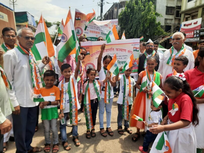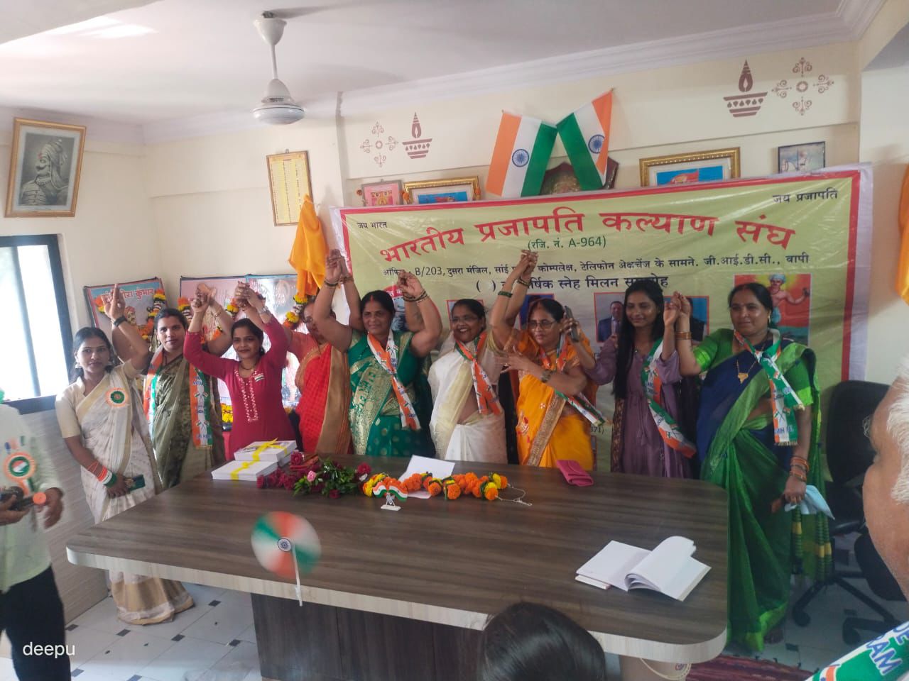 आज दिनांक 15/08/2023 दिन गुरुवार को “भारतीय प्रजापति कल्याण संघ” द्वारा आज़ादी महोत्सव कार्यक्रम वापी के राजपूत समाज हाल में बड़े हर्ष एवं उत्साह के साथ मनाया गया। जिसमें अन्य राज्यो से समाज के महानुभाओ ने भाग लिया। इस कार्यक्रम की शरुआत भारत माता की एवं महाराजा दक्ष प्रजापति की पूजा अर्चना से की गई। समाज के सभी बन्धुओने भारत माता एवं महाराजा दक्ष प्रजापति को फूल हार अर्पण किया। तद्पश्चायत प्रजापति समाज द्वारा तिरंगा रैली निकली गईं। यह तिरंगा रैली वापी साँई प्लाज़ा से निकलकर जी आई डी सी चार रास्ता से होते हुए साँई प्लाज़ा कोम्पलेक्ष के पास पहुँची। ये तिरंगा रैली भारत माता, जय हिंद और प्रजापति समाज की जय जयकार के नारे से गूंज उठीं। प्रजापति समाज के इस कार्यक्रम में बच्चों को नोट बुक वितरण, तेजस्वी बच्चों को संम्मनित किया गया। और समाज के समर्पित महानुभाओ को सम्मान चिन्ह से स्वागत किया गया। इस कार्यक्रम में उपस्थित समाज के सभी बंधुओ ने अपना परिचय देते हुए। समाज के सभी कार्यकर्ताओं का बहुत बहुत आभार अभिनंदन बयक्त किया। लोगों ने बताया हम जब से समाज से जुड़े तब से इस कार्यक्रम में आकर बहुत ही खुशी पाते है। और समाज में हमारी जान पहचान बढ़ गई हैं।संघ के अध्यक्ष श्री रामसूरत प्रजापति ने अपने वक्तव्य में बताया की समाज अपना परिवार हैं। समाज और परिवार के साथ रहने से हर व्यक्ति के जीवन में जो भी समस्या, तकलीफ़, मुसीबत आती हैं उसका समाधान तुरंत हो जाता हैं। और हम सभी लोग प्रगति के रास्ते चल पड़ते हैं। यदि हमारे समाज के किसी भी व्यक्ति को किसी भी प्रकार की तकलीफ़ हो वह समाज के सामने लाये उसका समाज कुछ न कुछ रास्ता ज़रूर निकलेगा। और उसे हर तरह से मदद करेगा। और समाज के बंधुओ को जोड़ने का आह्वान किया। हमारा समाज देश के हर राज्य में सक्रिय हैं और समाज के लोगों का काम रहा हैं। लोग हमारे समाज की प्रसंशा कर रहे हैं। संघ के राष्ट्रीय अध्यक्ष श्री राजवीरसिंह प्रजापतिने समाज के सभी बन्धुओ को संगठित रहने की सलाह दीं। कार्यक्रम में उपस्थित समाज के सभी बन्धुओ ने संघ के प्रमुख श्री आर. ऐम. प्रजापति का आभार व्यक्त किया। कार्यक्रम में उपस्थित समाज के सभी बंधुओ का समाज के तरफ़ से फूल हार और पुष्पगुछ से स्वागत किया गया। सभी लोगों के लिए नास्ता का भी आयोजन किया गया था। इस कार्यक्रम को सफल बनाने में समाज के कार्यकर्ता गण ओमप्रकाश प्रजापति, मिठाईलाल प्रजापति, सुशील प्रजापति, रमाशंकर प्रजापति, नवनीत प्रजापति, सुनील प्रजापति, विजय प्रजापति, इत्यादि लोगोंने तनतोड़ महेनत की। और समाज की महिलाओ, बच्चो का बहुत योगदान रहा। प्रजापति समाज उन सभी लोगों का खूब खूब आभार व्यक्त किया।