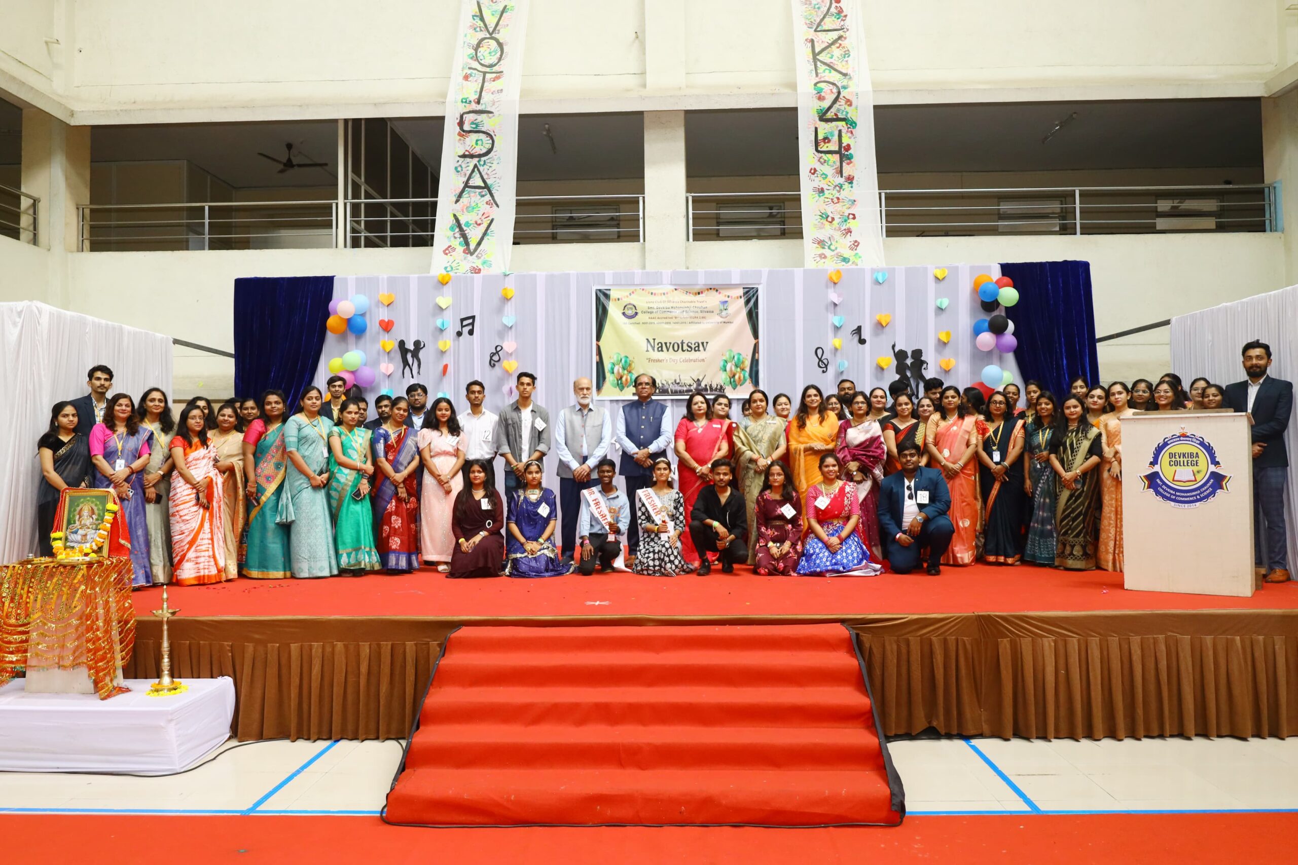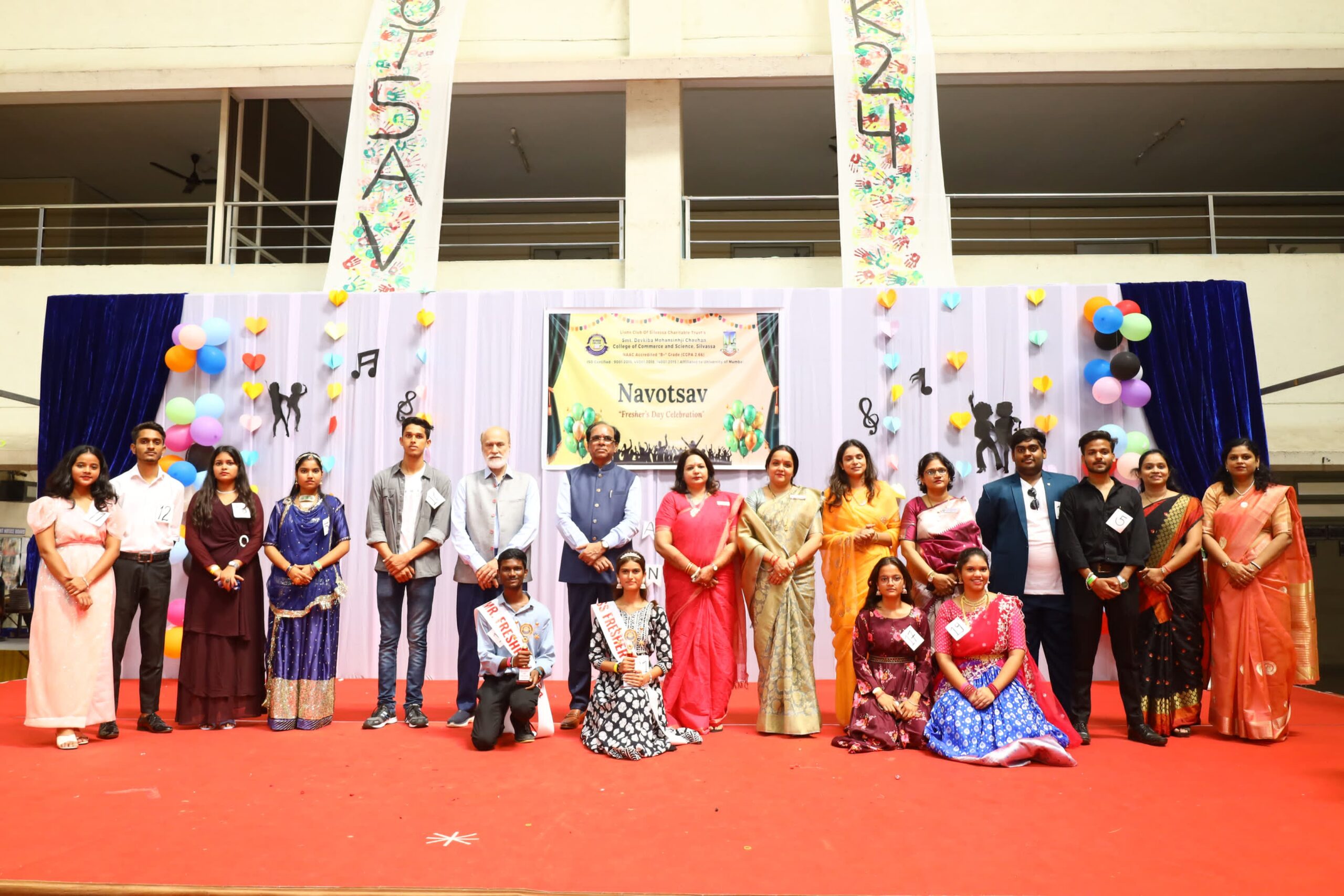 सिलवासा। सिलवासा स्थित श्रीमती देवकीबा मोहनसिंहजी चौहान कॉलेज ऑफ कॉमर्स एंड साइंस में 14 सितंबर 2024 को प्रथम वर्ष के छात्रों के स्वागत हेतु “नवोत्सव-2024” का आयोजन धूमधाम से किया गया। यह आयोजन कॉलेज जीवन की शुरुआत करने वाले नए छात्रों के लिए उत्साह और उल्लास से भरपूर रहा।कार्यक्रम का शुभारंभ दोपहर 12:00 बजे दीप प्रज्वलन से हुआ, जिसके बाद छात्रों द्वारा प्रस्तुत नृत्य और गायन की मनोरम प्रस्तुतियों ने माहौल को और जीवंत बना दिया। वरिष्ठ छात्रों द्वारा प्रस्तुत इन कलात्मक प्रदर्शनों ने समारोह में एक नई ऊर्जा का संचार किया।कार्यक्रम की मुख्य आकर्षण रही “मिस्टर और मिस फ्रेशर” प्रतियोगिता, जिसमें छात्रों ने अपनी प्रतिभा और व्यक्तित्व का प्रदर्शन किया। प्रतियोगिता के पहले चरण में प्रतिभागियों ने अपना परिचय दिया और अपनी विशिष्ट प्रतिभाओं का प्रदर्शन किया, जो दर्शकों और निर्णायकों पर गहरी छाप छोड़ने वाला रहा। दूसरे चरण में प्रश्नोत्तर राउंड का आयोजन हुआ, जहाँ छात्रों ने अपनी बुद्धिमत्ता, त्वरित सोच और आत्मविश्वास का शानदार परिचय दिया। प्रतियोगिता के समापन पर “मिस्टर और मिस फ्रेशर” का खिताब उन छात्रों को प्रदान किया गया, जिन्होंने अपने कौशल, ज्ञान और आत्म-विश्वास से सभी को प्रभावित किया।इस भव्य आयोजन में लायंस क्लब ऑफ सिलवासा चैरिटेबल ट्रस्ट के चेयरमैन श्री फतेहसिंहजी चौहान, सचिव श्री कुलदीप सिंह मुंद्रा, कोषाध्यक्ष श्री विष्वेश दवे, कॉलेज की प्रभारी प्राचार्या डॉ. सीमा पिल्लई, उप प्राचार्या डॉ. जाह्नवी आरेकर, कॉलेज की मानव संसाधन प्रबंधक मनाली चौहान, हवेली इंस्टीट्यूट ऑफ लीगल स्टडीज़ एंड रिसर्च की प्रभारी प्राचार्या डॉ. शिल्पा तिवारी, और लायंस इंग्लिश स्कूल की प्रभारी प्राचार्या निराली पारिख ने अपनी गरिमामयी उपस्थिति से कार्यक्रम की शोभा बढ़ाई।समारोह के अंत में, श्री फतेहसिंह जी एम. चौहान ने छात्रों को प्रेरक संबोधन दिया। उन्होंने शिक्षा के महत्व और समाज के प्रति जिम्मेदारी की भावना पर प्रकाश डालते हुए, छात्रों को आत्मविकास और समाज सेवा के प्रति प्रेरित किया। उन्होंने यह भी घोषणा की कि कॉलेज बहुत जल्द अपने नए परिसर में स्थानांतरित होगा, और छात्रों के उज्ज्वल भविष्य की कामना करते हुए “नवोत्सव” की सफलता के लिए सभी को बधाई दी।यह भव्य समारोह न केवल नए छात्रों के लिए कॉलेज जीवन की एक अविस्मरणीय शुरुआत बना, बल्कि सभी उपस्थित लोगों के लिए भी एक प्रेरणादायक अनुभव साबित हुआ।