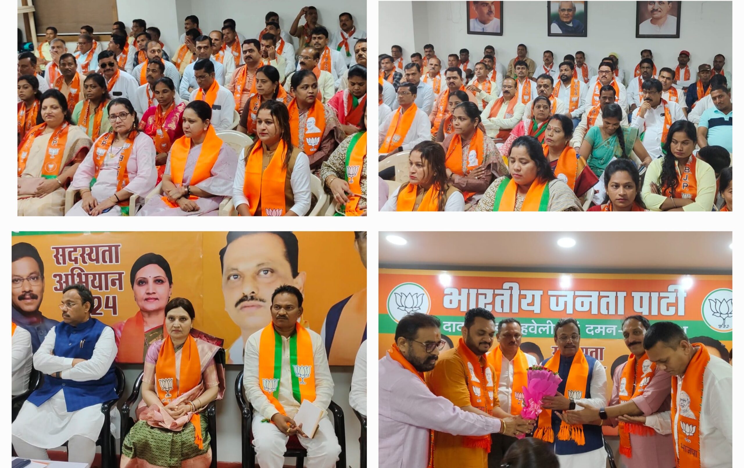 भारतीय जनता पार्टी के राष्ट्रीय महामंत्री एवं भाजपा के सदस्यता अभियान के राष्ट्रीय संयोजक श्री विनोद तावड़े जी अपने एक दिवसीय दौरे पर दानह एवं दमन दिव प्रदेश में पधारे है।अपने प्रवास के दूसरे सेशन में आज दोपहर में सिलवासा स्थित भाजपा कार्यालय “अटल भवन” पर भाजपा के प्रदेश के जिला के एवं मोर्चा के पदाधिकारीओ के साथ बैठक में उपस्थित रहे। भारतीय जनता पार्टी दानह एवं दमन दीव प्रदेश के अध्यक्ष श्री दीपेश टंडेल जी की अध्यक्षता में आयोजित इस बैठक में दादरा नगर हवेली की सांसद श्रीमती कलाबेन डेलकर, प्रदेश सदस्यता अभियान के संयोजक श्री महेश अगरिया, दानह के पूर्व सांसद श्री नटु भाई पटेल, सिलवासा शहर जिला जिला भाजपा के अध्यक्ष श्री अजय देशाई, दानह जिला पंचायत के अध्यक्ष श्री दामजी भाई कुराड़ा, सिलवासा नगरपालिका की अध्यक्षा श्रीमती रजनी बेन शेट्टी, प्रदेश महामंत्री श्री सुनील पाटिल, श्री जीतू भाई माढ़ा, सिलवासा ग्रामीण जिला अध्यक्ष श्री दीपक प्रधान, खानवेल जिला अध्यक्ष श्री संजय राउत सहित की मंच पर उपस्थिति रही।अटल भवन में आयोजित कार्यक्रम के पश्चात भाजपा के राष्ट्रीय महामंत्री श्री विनोद तावड़े जी सिलवासा नगरपालिका के वार्ड नंबर 15 के आग्रीवाड में आयोजित सदस्यता अभियान के एक कार्यक्रम में उपस्थित रहे।