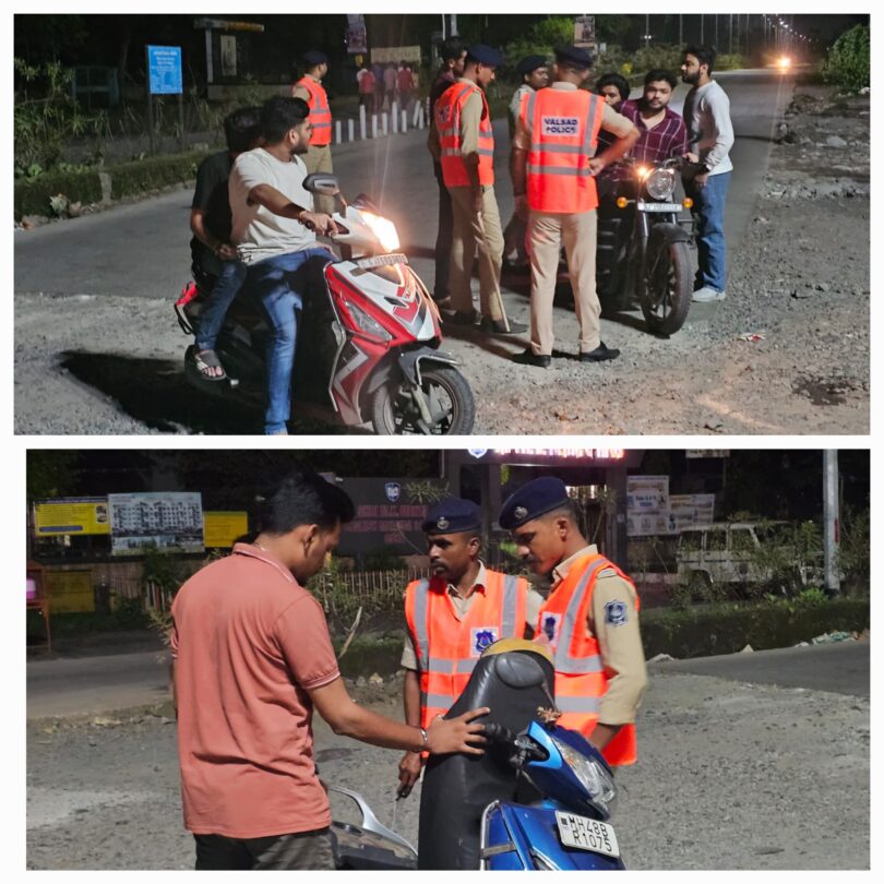पिछले कई दिनों से उमरगांव तालुका के हालात सही नहीं चल रहे हैं इसी मुद्दे पर नजर रखते हुए वलसाड जिला के एसपी डॉ.करणराज वाघेला के मार्गदर्शन में नवरात्रि के नो दिन रात में 12:00 से लेकर 2:00 बजे तक उमरगांव पुलिस दारू पीकर निकलने वाले तथा लुक्खे एवं टपोरीयो पर बाज की तरह नजर जमाए रखेगी,क्योंकि कुछ लोग नवरात्रि का फायदा उठाकर रात में लड़कियों की छेड़खानी करते हैं और कुछ तो दारू पीकर नवरात्रि में गरबा खेलने जाते हैं।इन सभी मुद्दों पर विचार करते हुए उमरगांव पुलिस नवरात्रि के 9 दिन यूं ही एक्शन मोड में नजर आएगी, उमरगांव पुलिस इंस्पेक्टर एस.डी चौधरी के कड़क अनुशासन के कारण अब टपोरियों की खैर नहीं, उमरगांव पुलिस स्टाफ के समीर भाई पटेल ने नवरात्रि के पहले ही दिन दारू पीकर निकलने वाले तथा टपोरियों की खबर ले डाली,नवरात्रि के 9 दिन इसी तरह शांतिमय माहौल बरकरार रखने के लिए अब से रोज उमरगांव पुलिस 12:00 बजे से 2:00 बजे तक एक्शन मोड में नजर आएगी.