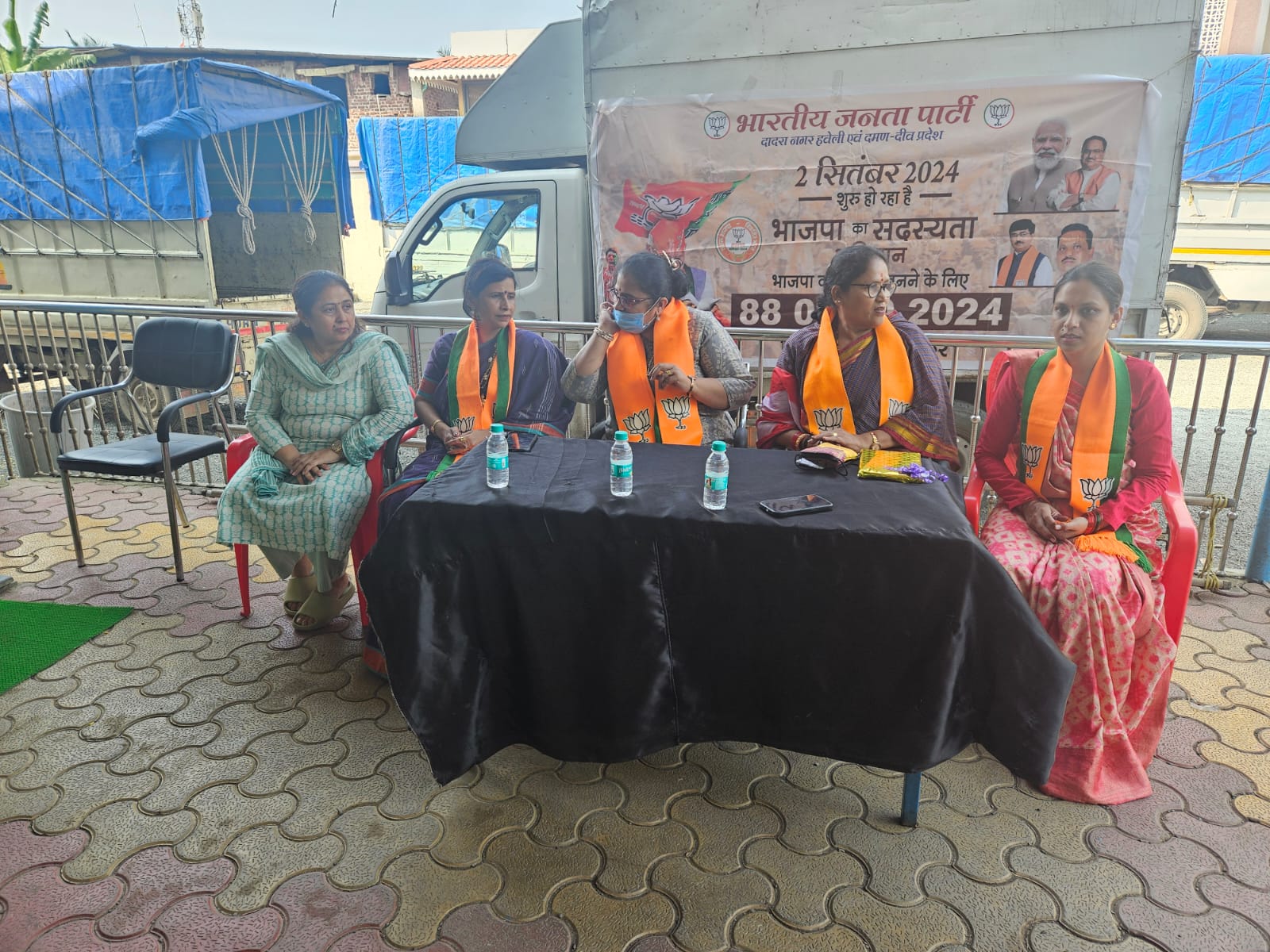 बीजेपी दादरा नगर हवेली दमन और दीव महिला मोर्चा ध्वारा सद्स्यता अभियान अंतर्गत दमन जिले में महाराष्ट्र की राष्ट्रीय प्रशिक्षण विशेष आमंत्रित सदस्य योगिनी जी उपस्थित