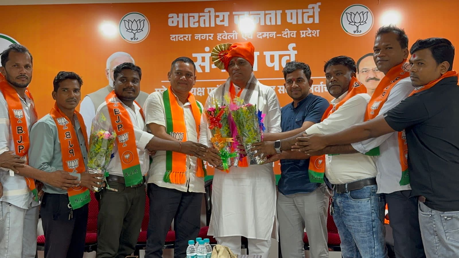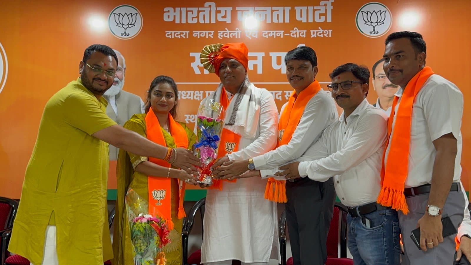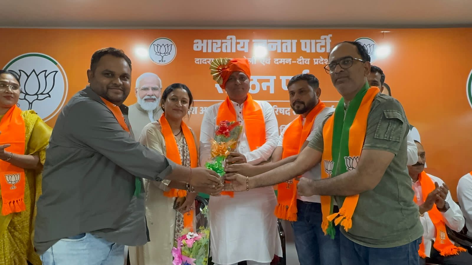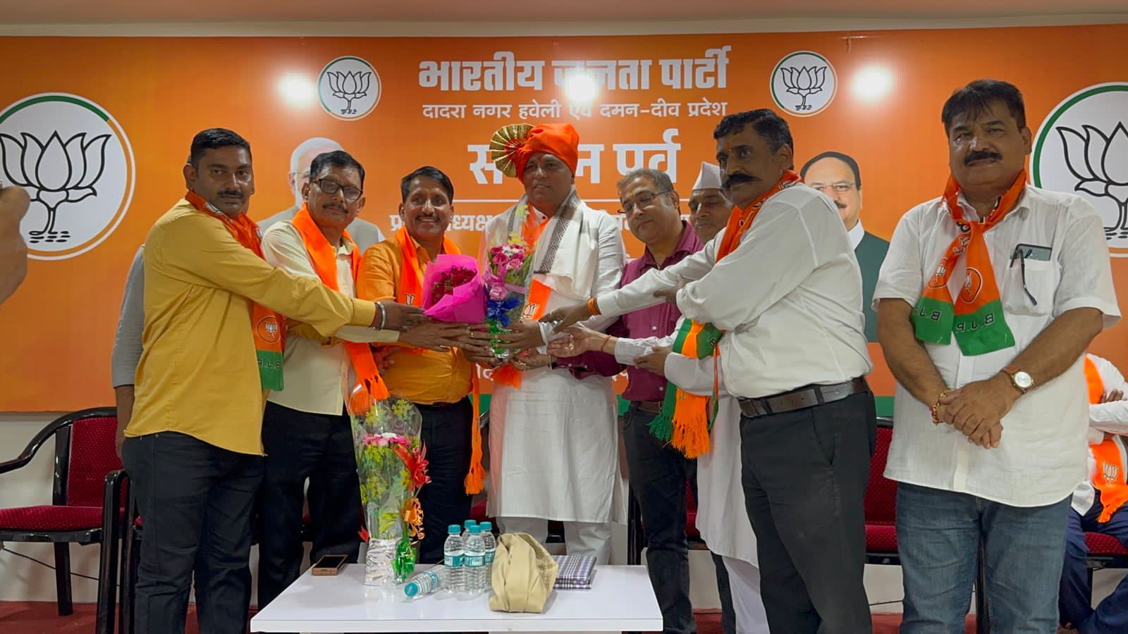 भारतीय जनता पार्टी दादरा नगर हवेली एवं दमन दीव प्रदेश के नवनियुक्त प्रदेश अध्यक्ष श्री महेश भाई अगरिया आज अध्यक्ष पद ग्रहण करने के पश्चात आधिकारिक रूप से भाजपा कार्यालय अटल भवन सिलवासा के अपने प्रथम दौरे पर पहुँचे। इस अवसर पर भाजपा के कार्यकर्ताओ द्वारा उनका भव्य स्वागत एवं सम्मान किया गया।इस अवसर पर भाजपा के प्रदेश के महामंत्री श्री सुनील पाटिल, श्री जीतु भाई माढा, सिलवासा शहर जिला अध्यक्ष शांतु भाई पुजारी, सिलवासा ग्रामीण जिला अध्यक्ष दीपक भाई प्रधान, खानवेल जिला भाजपा के अध्यक्ष यशवंत भाई खुटिया, दादरा नगर हवेली जिला पंचायत के अध्यक्ष दामजी भाई कुराड़ा, सिलवासा नगरपालिका की अध्यक्षा श्रीमती रजनी बेन शेट्टी, भाजपा के प्रदेश उपाध्यक्ष धर्मेश सिंह चोहान, श्रीमती भारती बेन हलपति, श्री अनिल दीक्षित, श्रीमती निशा बेन भावर, श्री सुनील महाजन उपस्थित रहे। आज दादरा नगर हवेली के विविध समाजों के प्रतिनिधियों द्वारा नवनियुक्त अध्यक्ष श्री को बधाई एवं शुभकामनाएँ दी गई। अल्पसंख्यक मोर्चा के महामंत्री श्री मुस्ताक भाई तवा और उपाध्यक्ष श्री वाहिद भाई कालिया द्वारा पुष्पगुच्छ देकर सम्मानित किया। महाराष्ट्र समाज एवं अन्य सामाजिक संस्थाओं द्वारा उन्हें सम्मानित किया गया।उतर भारतीय प्रकोष्ठ की और से श्री द्वारिकानाथ पांडे जी के नेतृत्व में स्वागत किया गया।