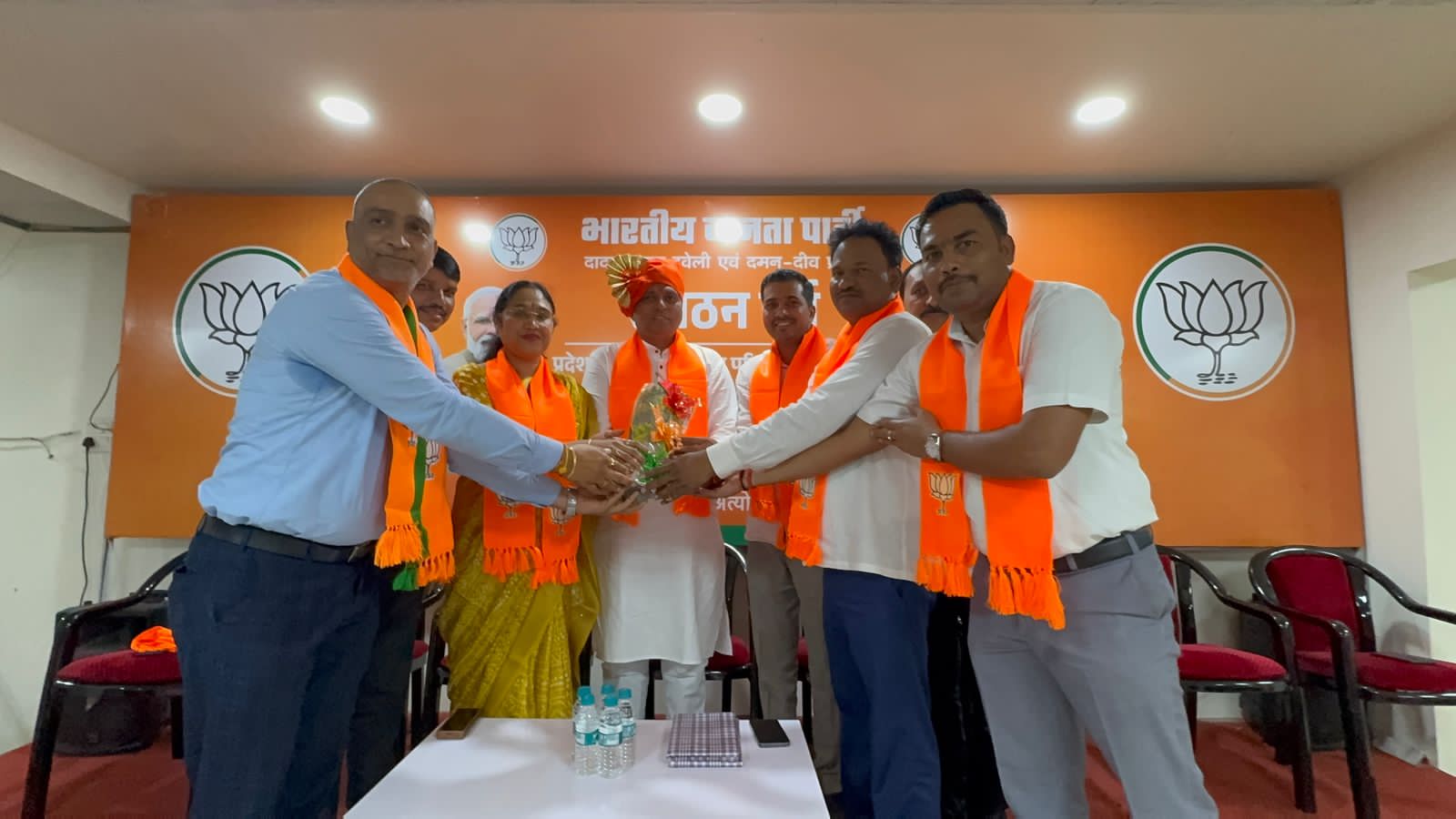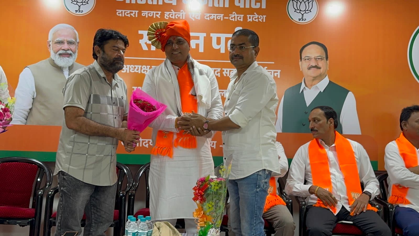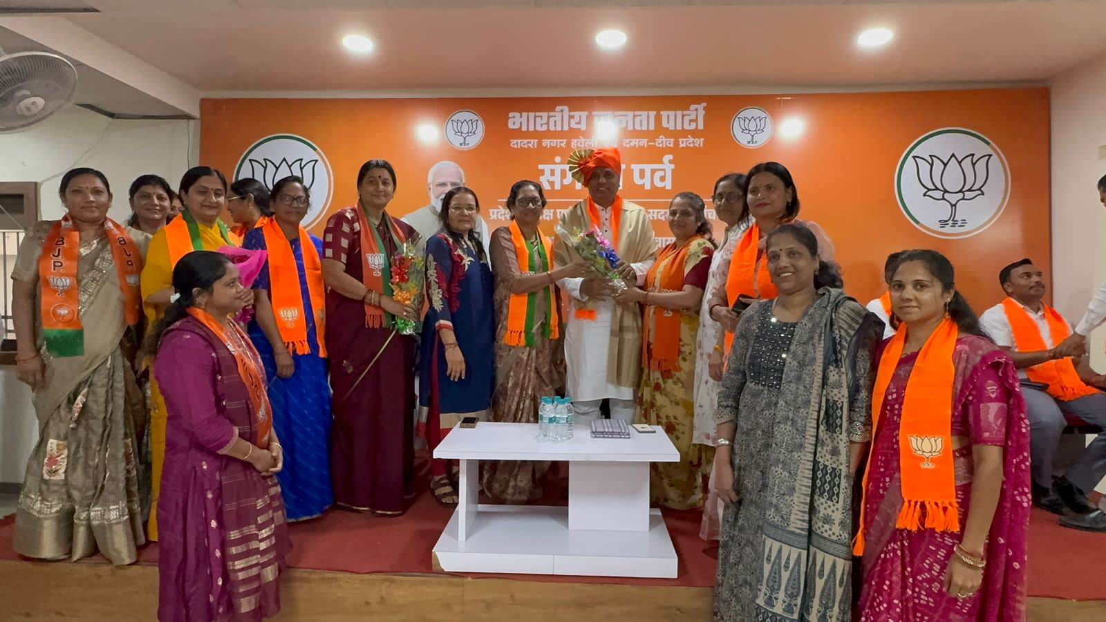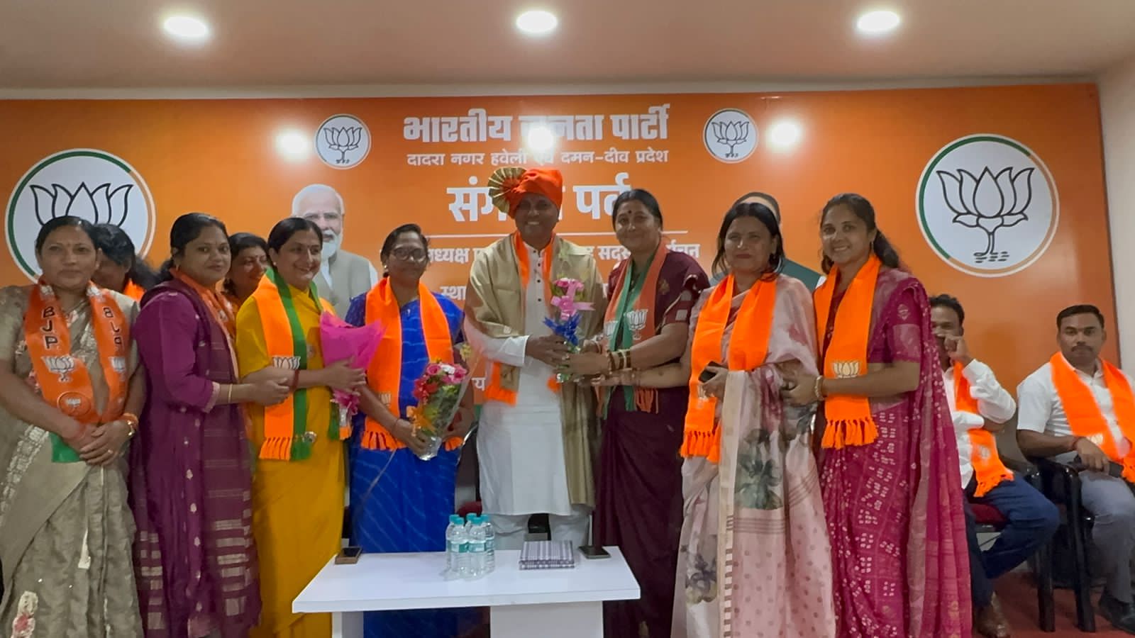 भारतीय जनता पार्टी दादरा नगर हवेली एवं दमन दीव प्रदेश के नवनियुक्त प्रदेश अध्यक्ष श्री महेश भाई अगरिया आज अध्यक्ष पद ग्रहण करने के पश्चात आधिकारिक रूप से भाजपा कार्यालय अटल भवन सिलवासा के अपने प्रथम दौरे पर पहुँचे। इस अवसर पर भाजपा के कार्यकर्ताओ द्वारा उनका भव्य स्वागत एवं सम्मान किया गया।इस अवसर पर भाजपा के प्रदेश के महामंत्री श्री सुनील पाटिल, श्री जीतु भाई माढा, सिलवासा शहर जिला अध्यक्ष शांतु भाई पुजारी, सिलवासा ग्रामीण जिला अध्यक्ष दीपक भाई प्रधान, खानवेल जिला भाजपा के अध्यक्ष यशवंत भाई खुटिया, दादरा नगर हवेली जिला पंचायत के अध्यक्ष दामजी भाई कुराड़ा, सिलवासा नगरपालिका की अध्यक्षा श्रीमती रजनी बेन शेट्टी, भाजपा के प्रदेश उपाध्यक्ष धर्मेश सिंह चोहान, श्रीमती भारती बेन हलपति, श्री अनिल दीक्षित, श्रीमती निशा बेन भावर, श्री सुनील महाजन उपस्थित रहे। आज दादरा नगर हवेली के विविध समाजों के प्रतिनिधियों द्वारा नवनियुक्त अध्यक्ष श्री को बधाई एवं शुभकामनाएँ दी गई। अल्पसंख्यक मोर्चा के महामंत्री श्री मुस्ताक भाई तवा और उपाध्यक्ष श्री वाहिद भाई कालिया द्वारा पुष्पगुच्छ देकर सम्मानित किया। महाराष्ट्र समाज एवं अन्य सामाजिक संस्थाओं द्वारा उन्हें सम्मानित किया गया।उतर भारतीय प्रकोष्ठ की और से श्री द्वारिकानाथ पांडे जी के नेतृत्व में स्वागत किया गया।